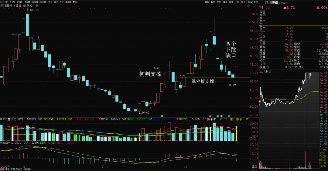 正川股份的历史走势非常友好,在持续大涨阶段没有大幅高开高走,更没有一字板,往往都有低开或回调走低的机会“上车”。后市如参与,则可关注分时回调机会——或许本次能展开再一波上涨。