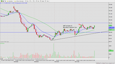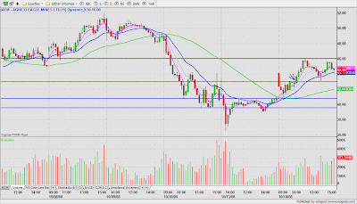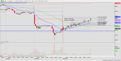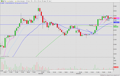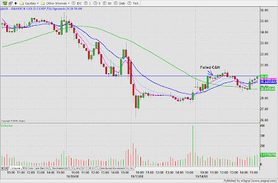 With all the headlines (LEH, MER BAC, AIG), I found today's markets were jittery and choppy so I stuck to the most orderly setups. AIG was a wide gap so I was looking for confirmation on the 1 minute time frame (3 pivot point base & break).