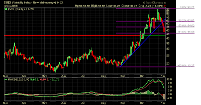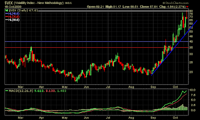 The financial sector headlines (LEH, MER, BAC, AIG) drubbed global markets, with the DOW down 500+ points and the S&P taking out 52 week lows as volatility spiked.
