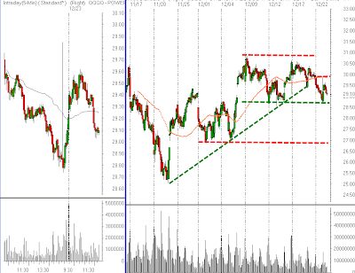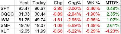 to dominate the action. The Qs are approaching the 2850 level again as the financials flirt with new lows and there is little reason to look for a turn higher at this point.