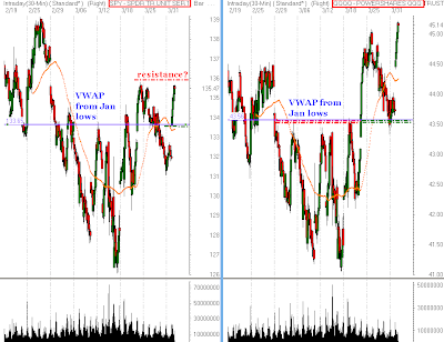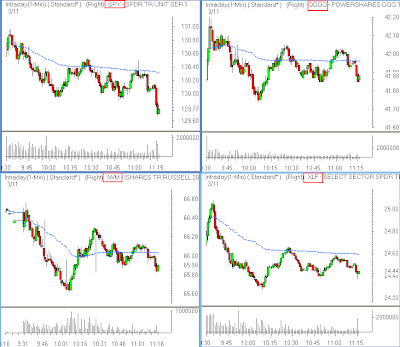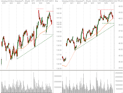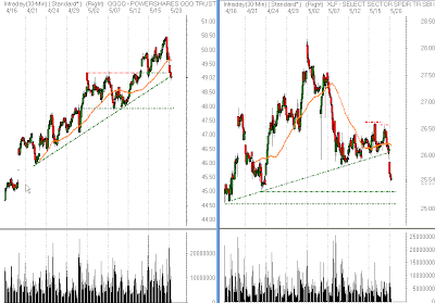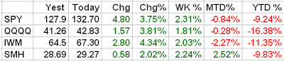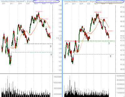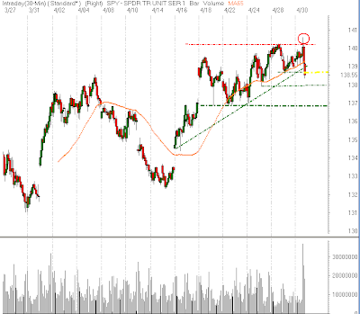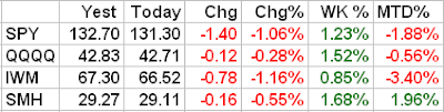 to open lower in today's trading. The SPY is trading back below the important 135.00 level, but the Qs are holding above the lows of the week. The market will continue to experience wild volatility as the pace of earnings releases continues to increase. Risk Management!