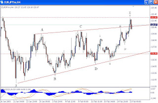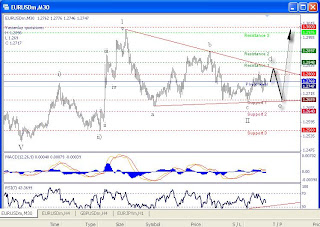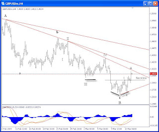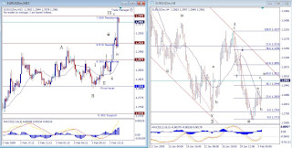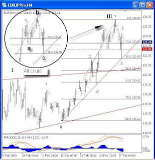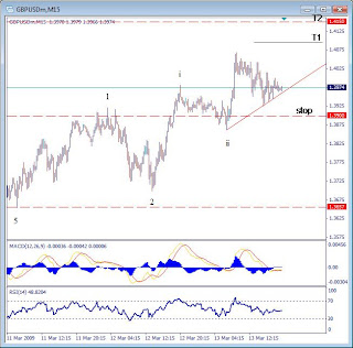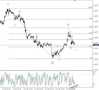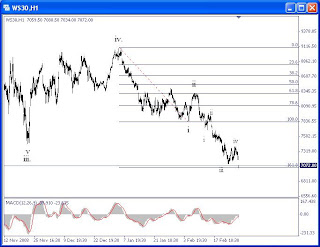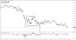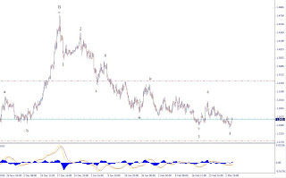 Both indicators are pointing down, reaching their turning points (oversold) a good indication that this is indeed a wave 3 and an indicator that it might stay oversold for a while. As a contra indicator you could see this as a sell signal.