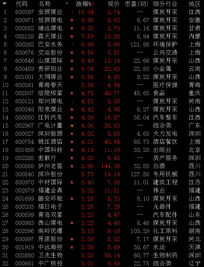 天气有点变得凉快了,冬天炒煤似乎提前到来。煤炭板块以1.95%领涨行业板块,8只个股收涨4%以上,其中安源煤业、恒源煤业涨停。