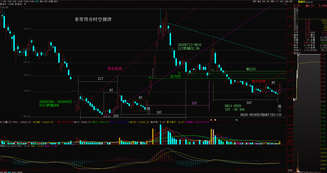 紫鑫药业(002118),医药板块,基因、区块链、工业大麻概念。8月7日到9月29日从缓跌到急跌,在上一次涨停的5月26日次日后第89日的今天放量涨停。公司拥有3种国家二级保护中药,产品主要包括四妙丸、藿胆片、肾复康胶囊等;与中科院基因组研究所、耶鲁大学等合作,公司自主研发国产第二代DNA测序仪,以及焦磷酸一代半测序仪、生物芯片、数字PCR等。